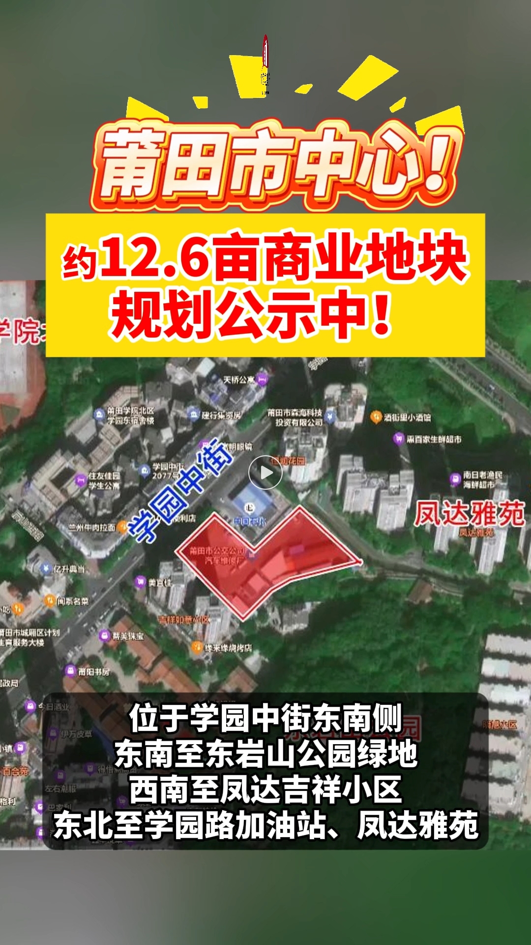 约12.6亩!莆田市中心一商业地块规划公示中!