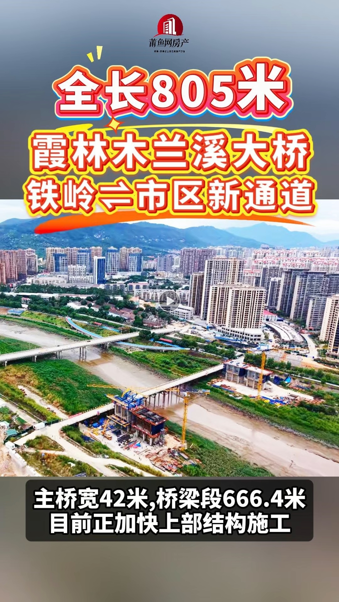 全长805米!霞林木兰溪大桥预计2026年10月主桥合拢,将连接木兰铁岭片区与市区的交通路网!